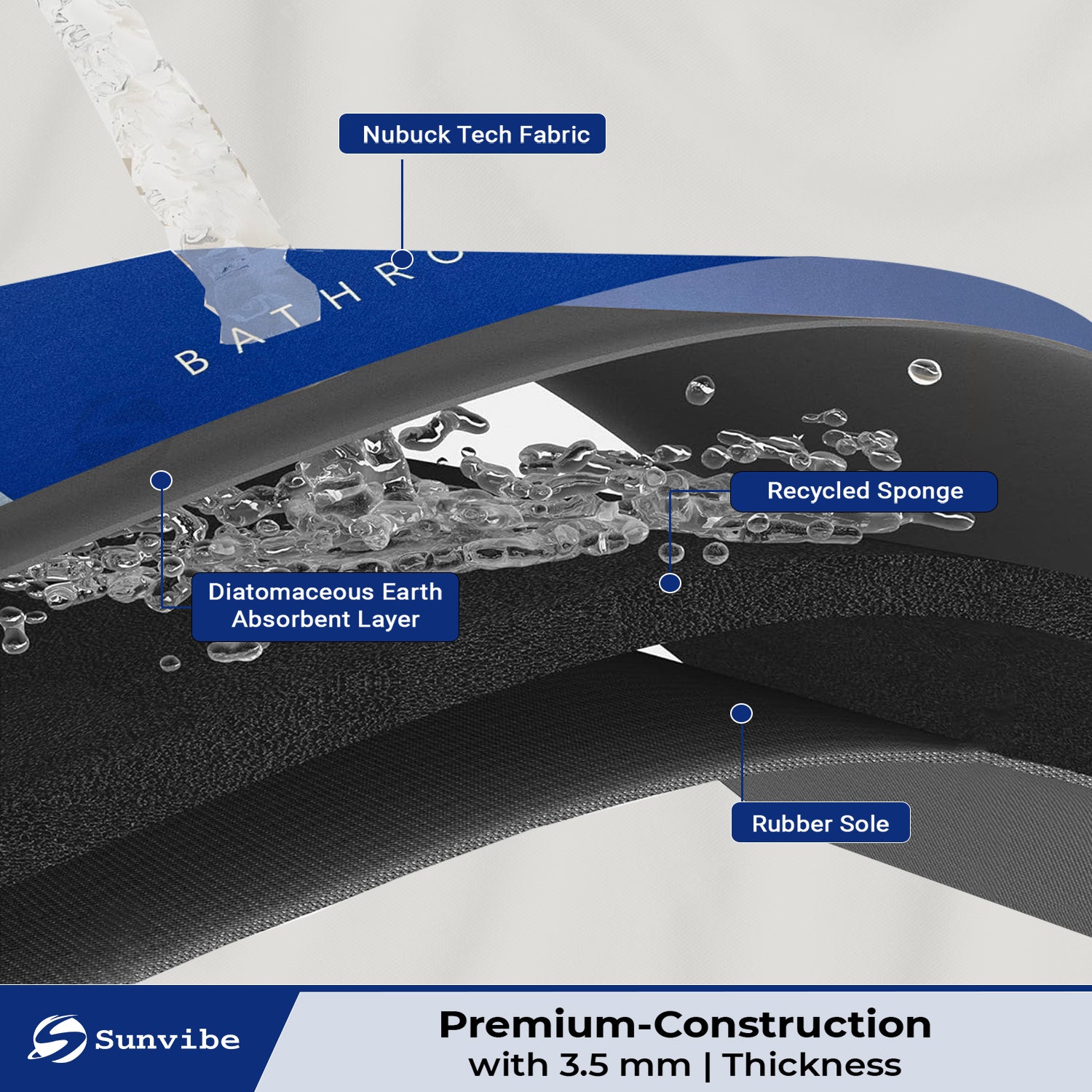 ✅ MATERIAL: Rubber mat has 4 layers: soft nubuck tech fabric top, diatomaceous earth layer for quick drying, recycled sponge layer for cushioning, and non-slip rubber sole bottom for safety in the bathroom.