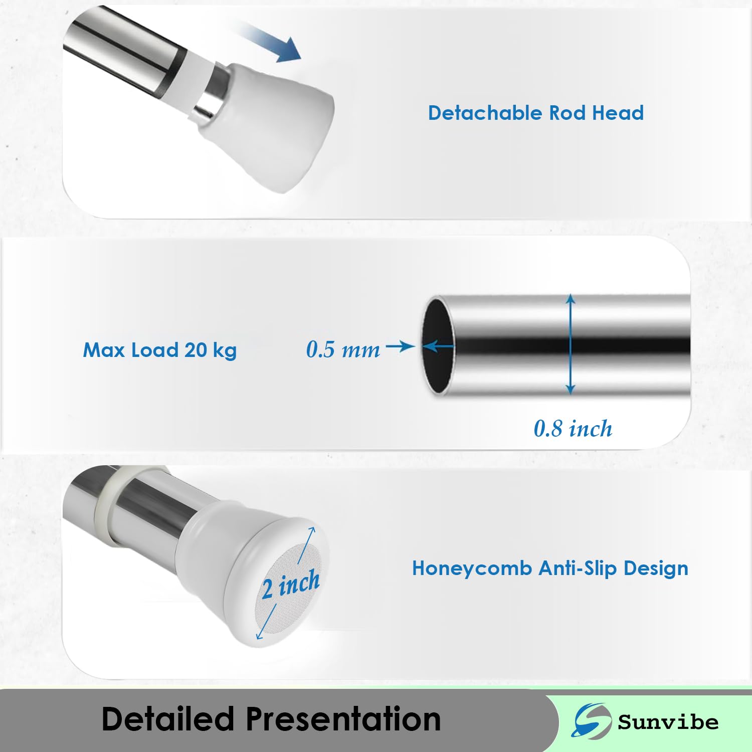 ✅ Anti-Skid & Secure: Rubber ends prevent slipping, keeping curtains in place.