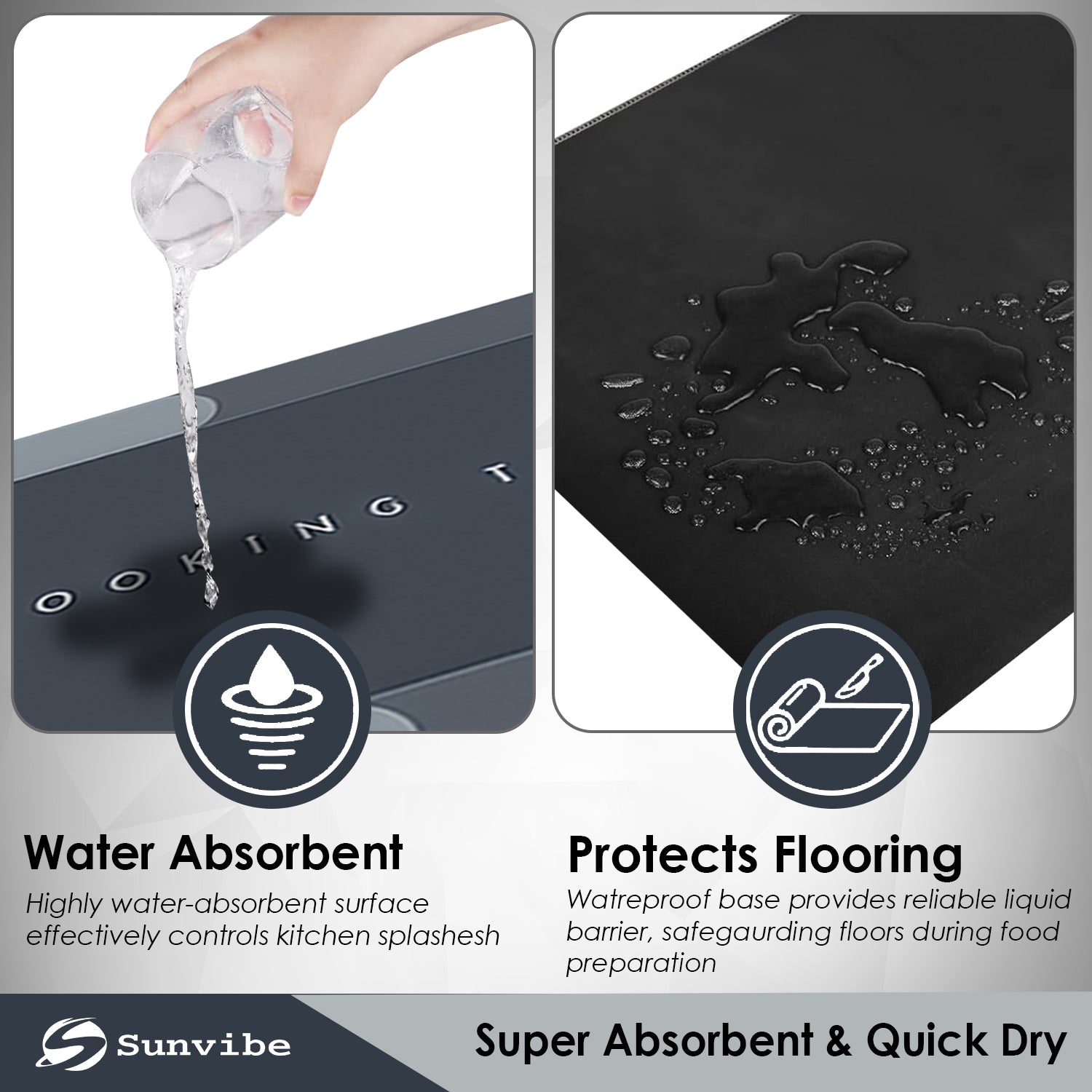 ✅MATERIAL & Size : Crafted from premium rubber material, ensuring durability and resilience to daily wear and tear in the busy kitchen environment. Small mat size is 60x40cm and Large mat size is 120x40cm with 3.5mm thickness. Perfect fit for your Kitchen.