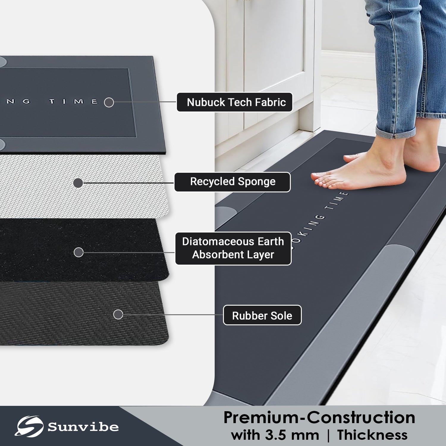 Kitchen Floor Mat 3.5mm (120x40cm & 40x60cm, Cooking Grey)