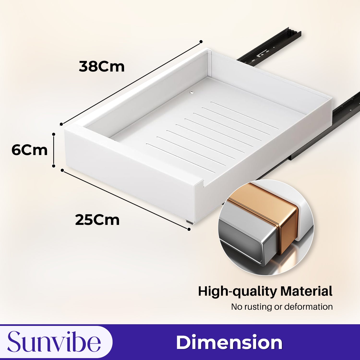 ✅Size: The kitchen storage drawer size is L*B*H: 38 * 25 * 6 cm, making it adaptable to various interior layouts. The sliding drawer adopts an elegant and simple white design.