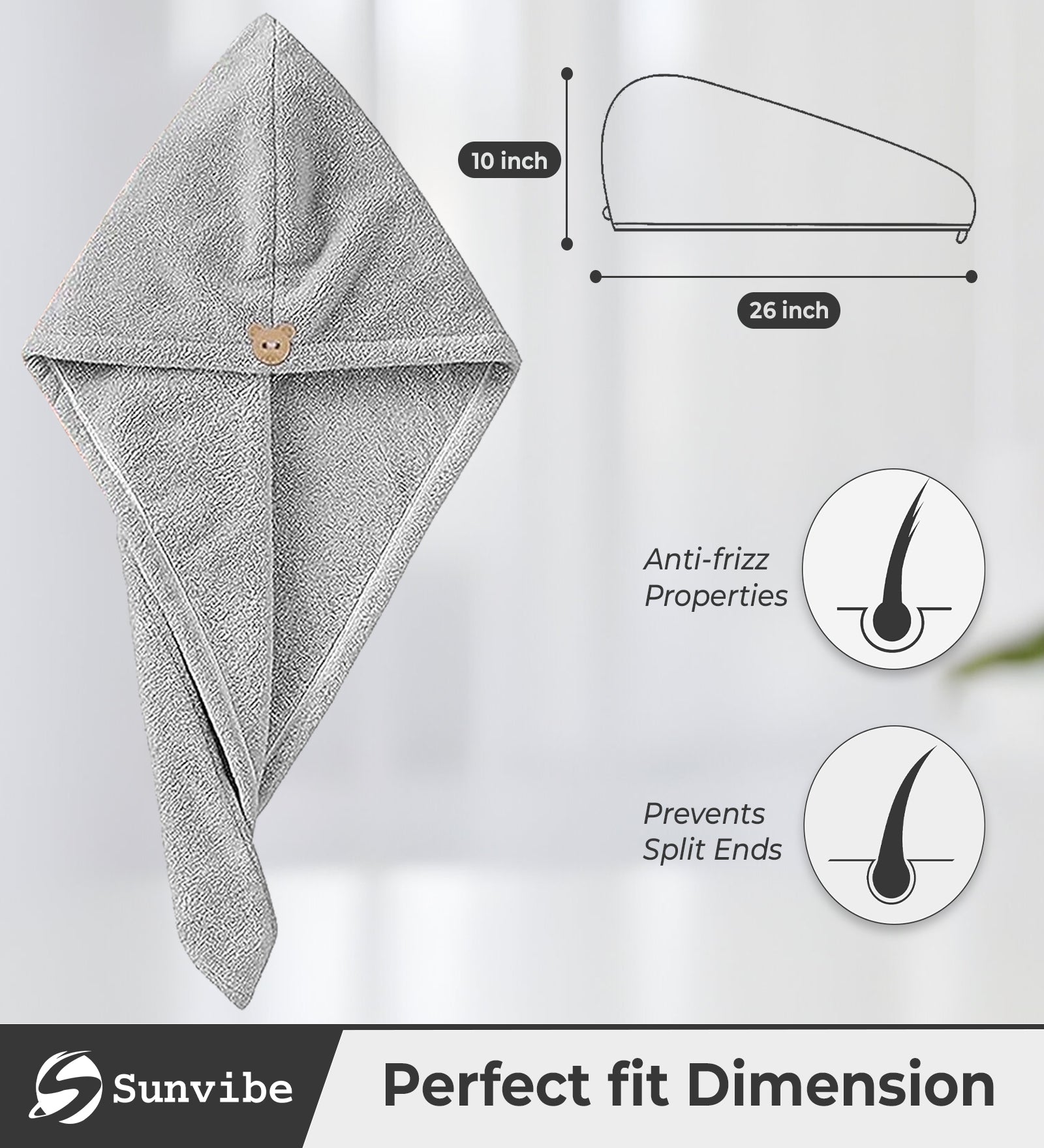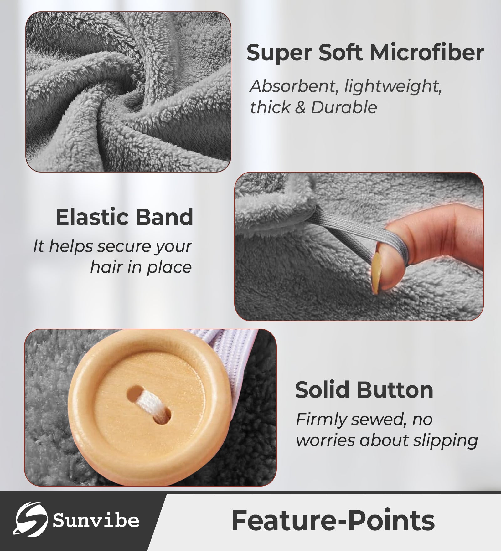 ✅HIGH QUALITY MICROFIBER : Our hair towel is crafted from premium microfiber material, known for its superior absorbency and quick-drying properties. This ensures that your hair dries faster while efficiently absorbing excess moisture, leaving your hair feeling fresh and dry.