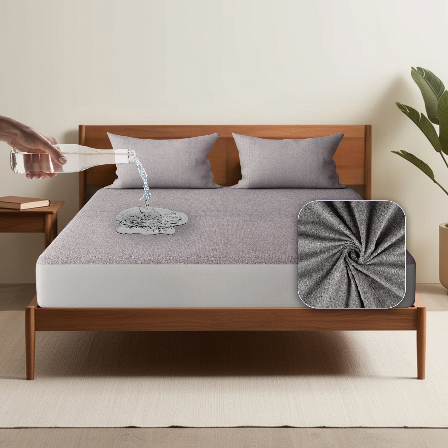 100% Waterproof Premium Cotton Mattress Protector offers ultimate protection with a luxurious, soft feel. Made from breathable, hypoallergenic cotton, it shields your mattress from spills, stains, and allergens, creating a healthier sleep environment. Its fitted design ensures a secure, snug fit, while the sleek grey color adds a touch of style. Available in a King size (78"x72"), this protector combines practicality with comfort, making it perfect for preserving your mattress and ensuring a restful sleep.